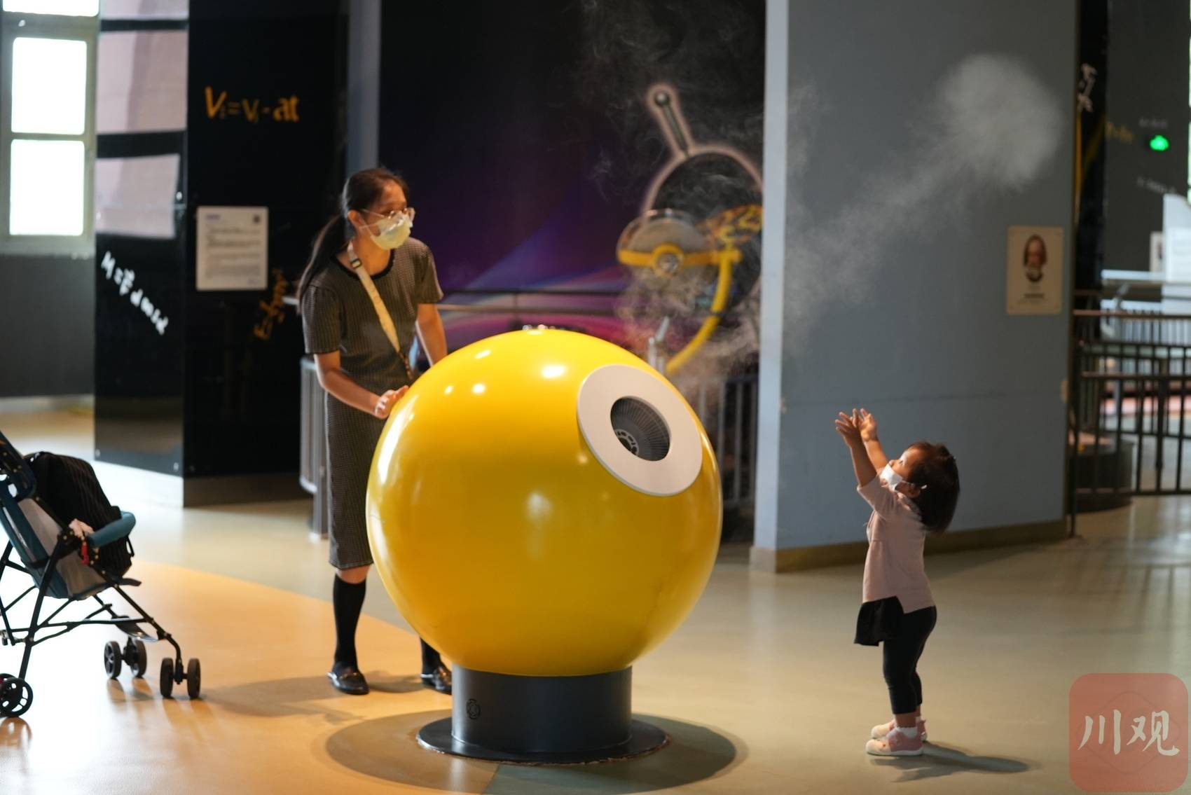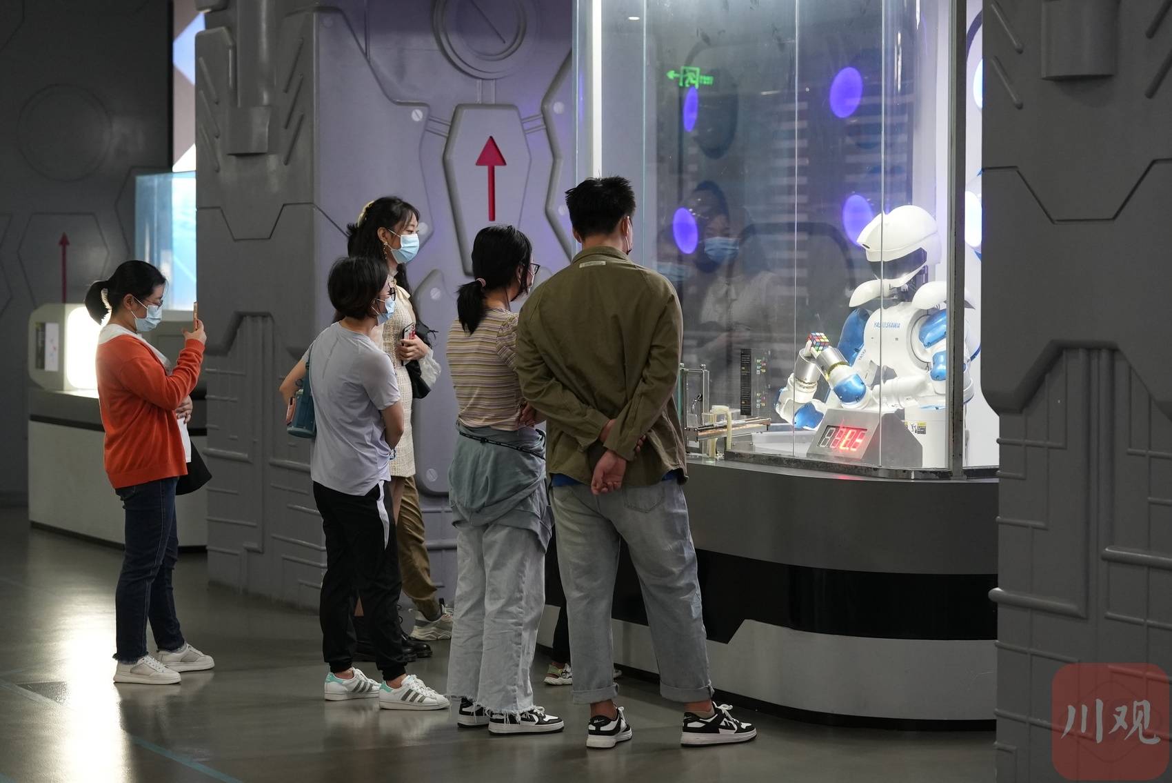 9月20日上午10点过,记者在四川科技馆门口看到,许多家长带着孩子通过检票口进入馆内。一楼的中国空间站、二楼的魔方机器人、三楼的人体器官模型等等都吸引了不少大人和小孩子的关注。