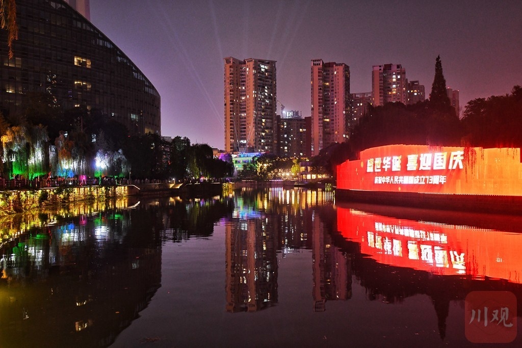 此次景观照明将一直持续至10月7日,按照每天19:30开启,天府广场-人民南路、春盐商圈-蜀都大道等重要轴线00:00关闭,其他区域22:00关闭。