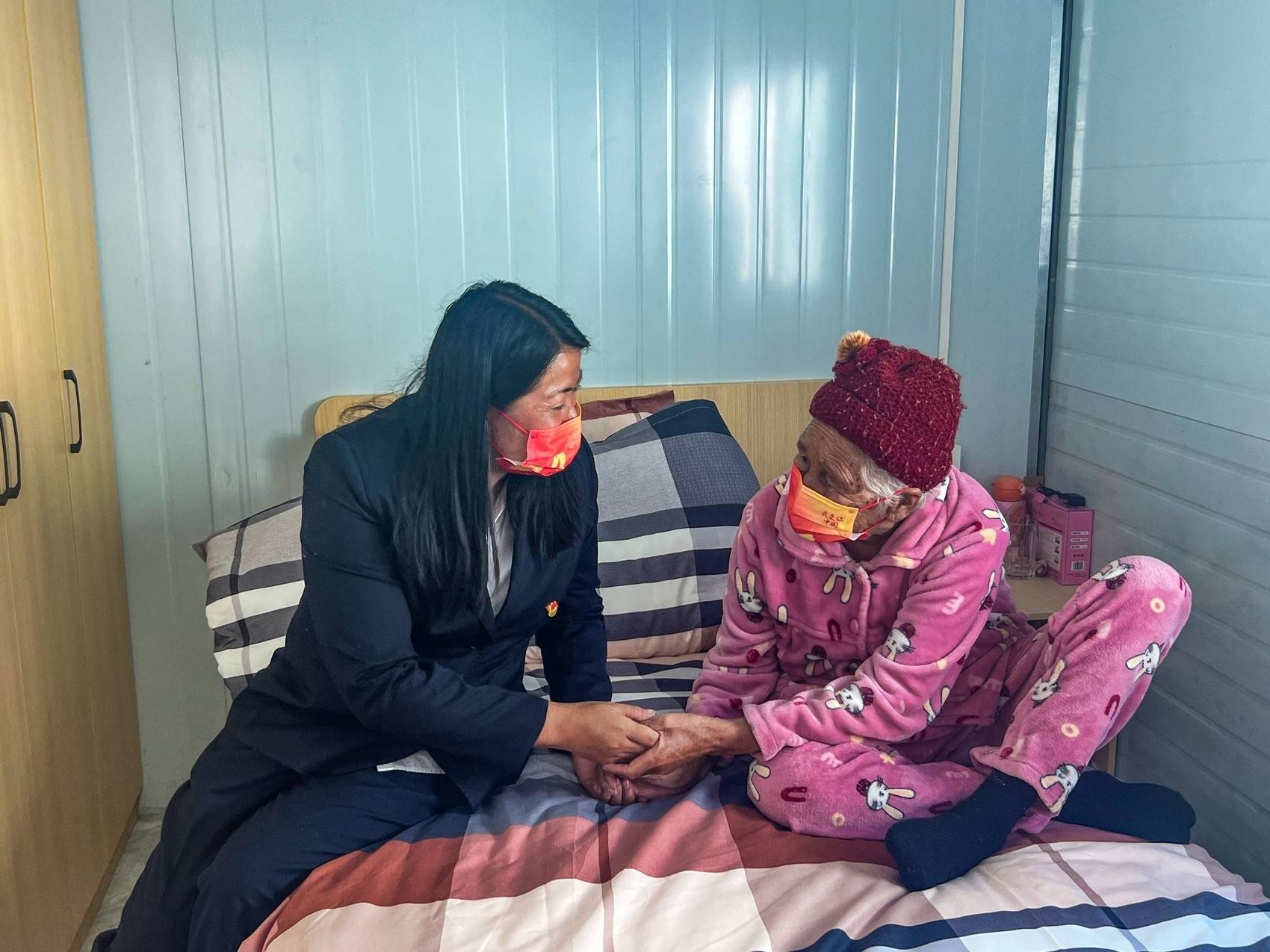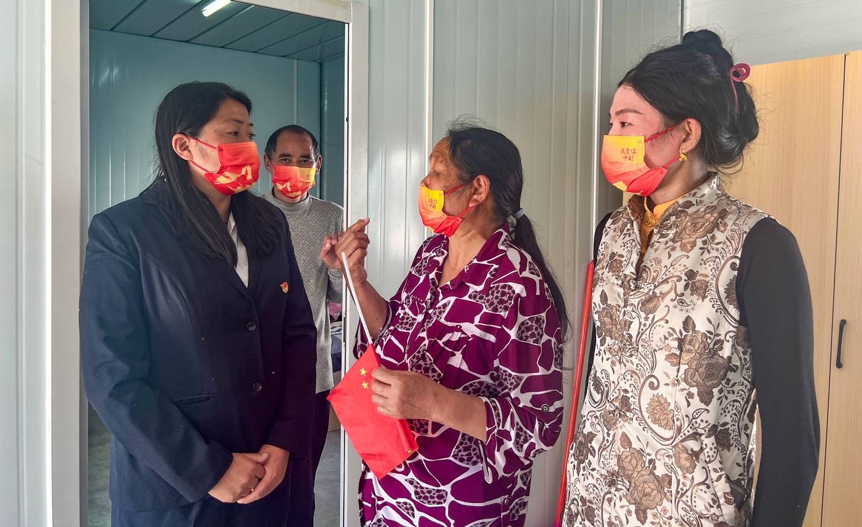 与此同时,磨西一号过渡安置点11幢3号房内,泸定县税务局磨西税务分局工作人员正在联谊对象邹朝清家。泸定县税务局磨西税务分局局长任泽彬介绍,为充分发挥民族团结进家庭联谊联络机制作用,我们通过面对面交流、微信、电话等方式,了解情况及所需所盼,收集困难诉求并积极回应诉求,帮助受灾联谊家庭解决生产生活中存在的困难问题。