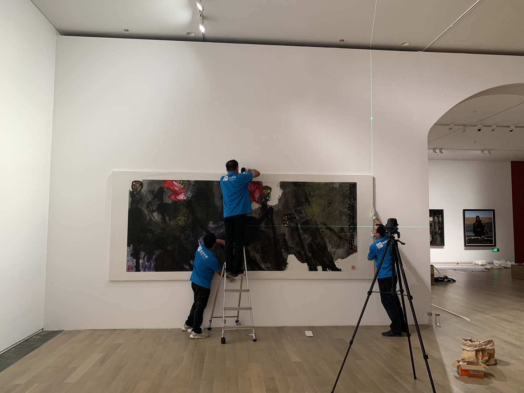 在这些额外的“工作日”里,蓝顶艺速的员工也在加班加点,“最忙的时候,运输、布展到半夜12点才吃晚饭,第二天早上8点又继续干活。”徐炜将艺术家杨述的一幅三联画从重庆运至江苏常州展出,作品总高6.8米、宽2.8米,总重达450公斤左右,工人们用上脚手架和升降平台车,花了整整3天时间才完成布展。