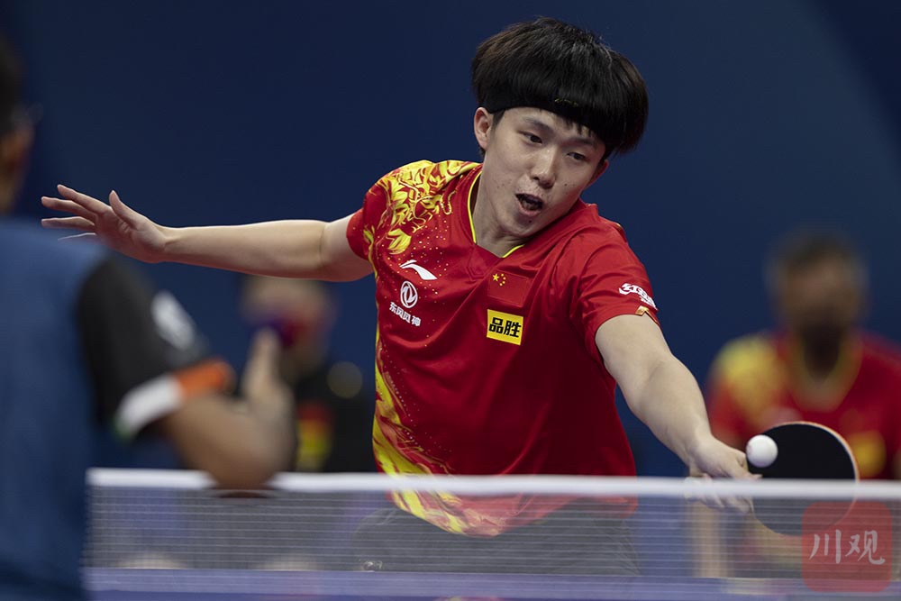 第56届国际乒联世界乒乓球锦标赛团体赛10月6日继续在成都高新体育中心多能功馆举行。在中国男乒与印度队的1/8决赛中,中国男乒三名球员樊振东、马龙、王楚钦轻松战胜各自对手,以3:0轻松晋级本届成都世乒赛团体赛八强,整场比赛耗时不过52分钟——中国男乒“光速”晋级八强。