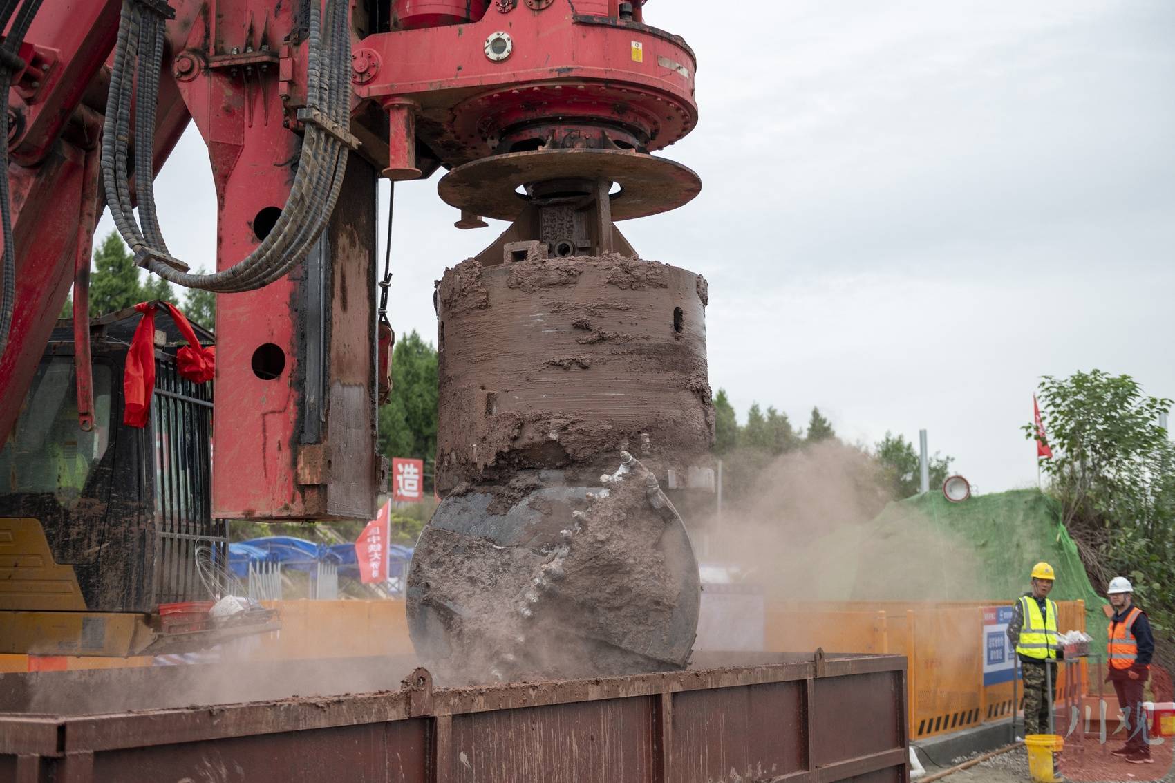 首桩施工现场是一个长约40米、宽约18米的平地,“这里原本是一个小山坡。”邓克武告诉四川在线记者,为尽快实质施工,建设者们在完成便道施工后,用一个晚上就铲平了山坡,平整出了施工场地,清理土石方约4000方,可填满1.5个游泳池。