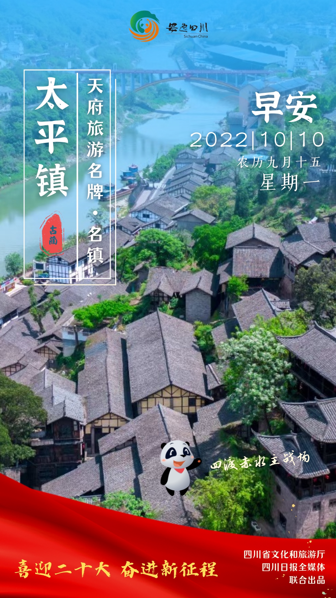 10月10日,星期一。从今日起,天府旅游名牌日历海报推出“喜迎二十大 奋进新征程”系列,走进一批红色天府旅游名镇。