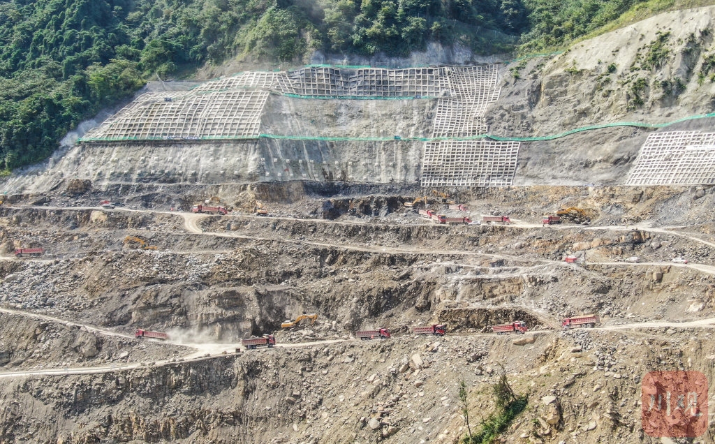 “四季度我们拿出了决战的姿态,加大了石料开采和运输强度。挖掘机从之前8台增加到13台,重型卡车也保持在80辆至120辆之间,后面还将增加到150辆左右。”据张铎介绍,天气好的时候,料场还要进行夜间施工。