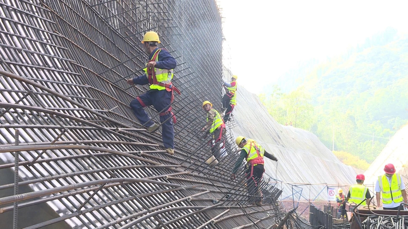 国庆节期间,在向家坝灌区北总干渠一期一步工程—大地湾渡槽项目施工点,工人正加紧对渡槽进行钢筋绑扎施工。 向家坝灌区公司 供图