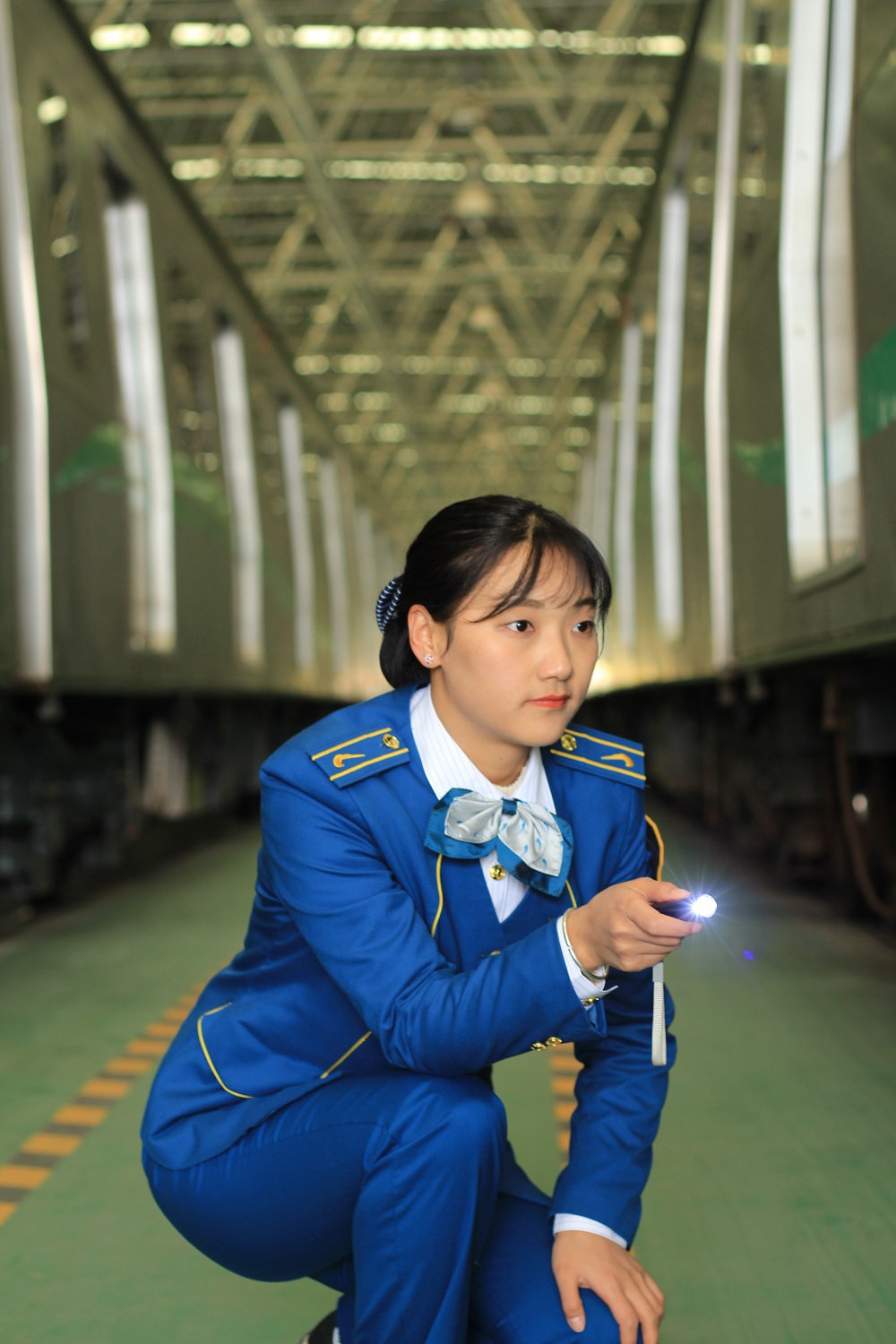 “奋进新时代”主题成就展四川展区“办好民生实事 不断满足人民群众新期盼”板块,有一张看起来并不起眼的照片,画面中,一位身着蓝色制服的姑娘拿着手电筒,在空空的地铁车厢里专注地进行检车作业。