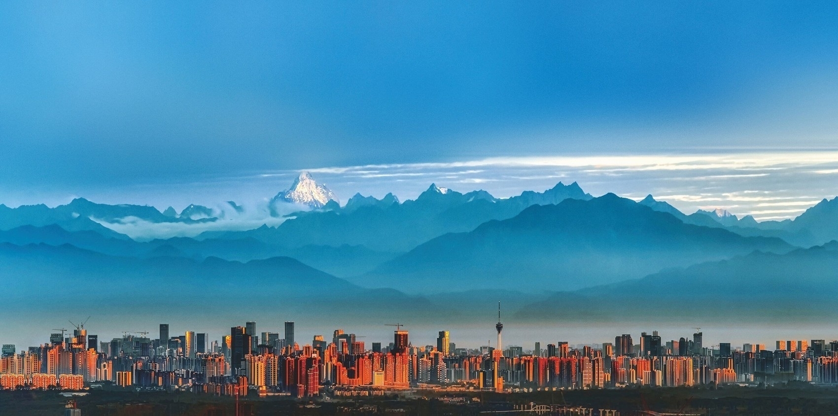 诗圣杜甫描绘的“窗含西岭千秋雪”美景再现。