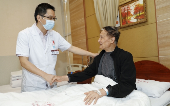 南充市中医医院主任医师、外二科主任粟周全在医院巡房、与患者交流病情。黎涛 摄