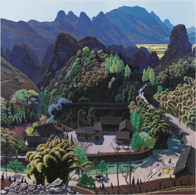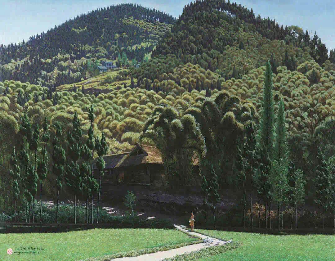 由此,简崇民立足本土,将“川西”作为写生风景油画创作的主要题材,从这个突破口创作出极具个人特色的作品,形成其独特的绘画符号。他以西方绘画的写实手法借鉴中国画的工笔画技巧,用极其细腻的笔法描绘出川西平原的静谧,以赤诚的艺术之心表达了对川西土地的深情眷恋和对勤劳质朴的劳动人民的无限赞美。