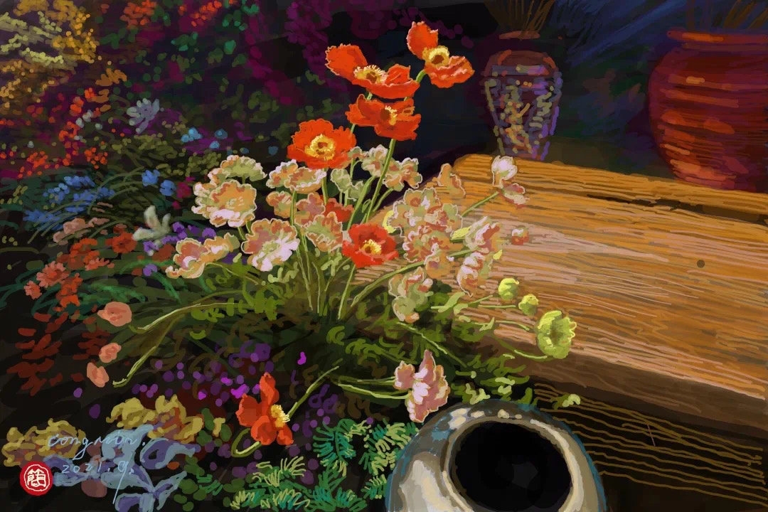 《花儿为什么这样红》iPad绘画 纸上印刷 46cm x70cm 2021