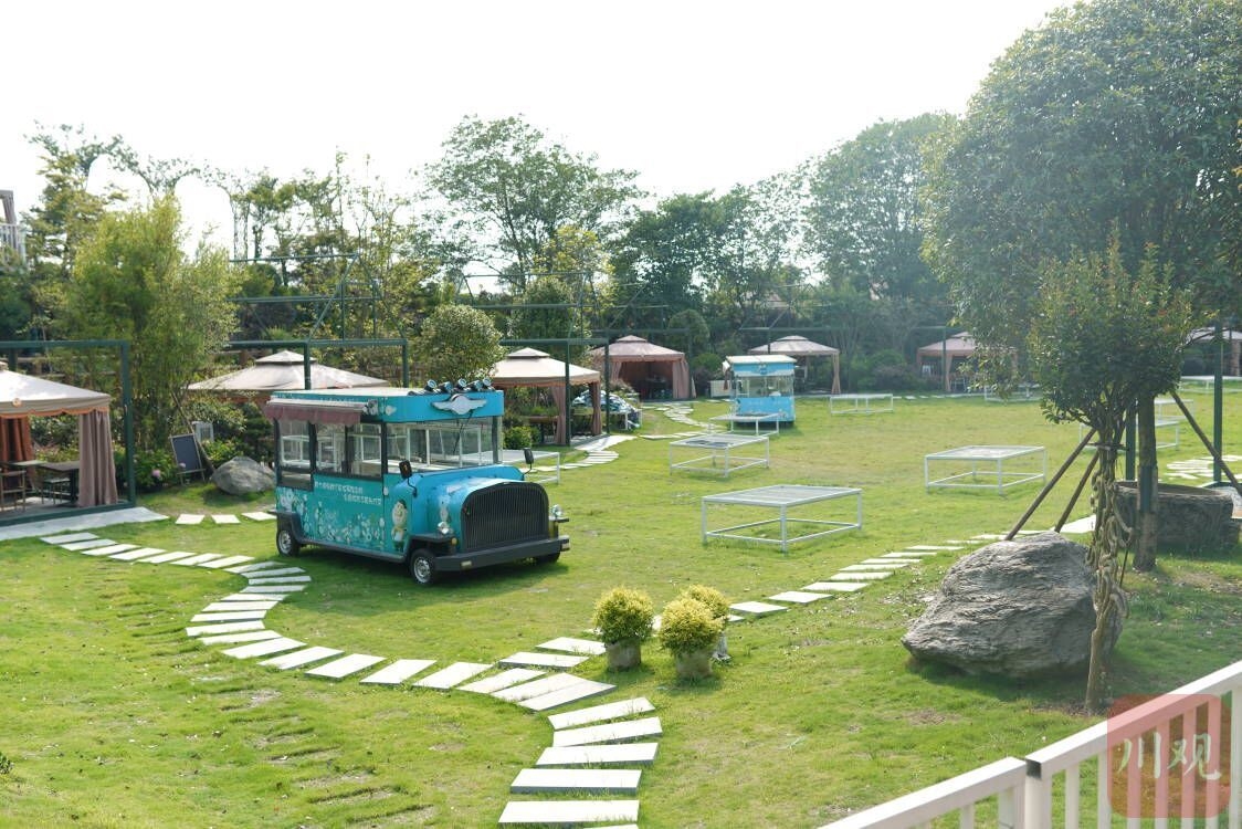 营地负责人杨元成是镇上的“花木大户”,2021年开始尝试转型,“当下比较受欢迎的露营,很讲究生态环境,我们和盛镇处处都是花卉苗木,空气、环境相当巴适。”