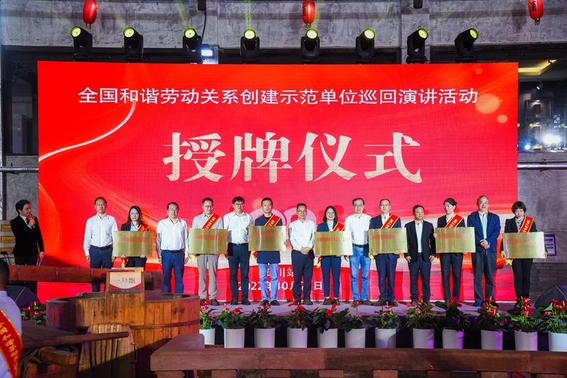 活动期间,省协调劳动关系三方对我省被命名企业、工业园区进行了授牌。泸州老窖股份有限公司代表我省被命名企业和园区宣读构建和谐劳动关系倡议书。