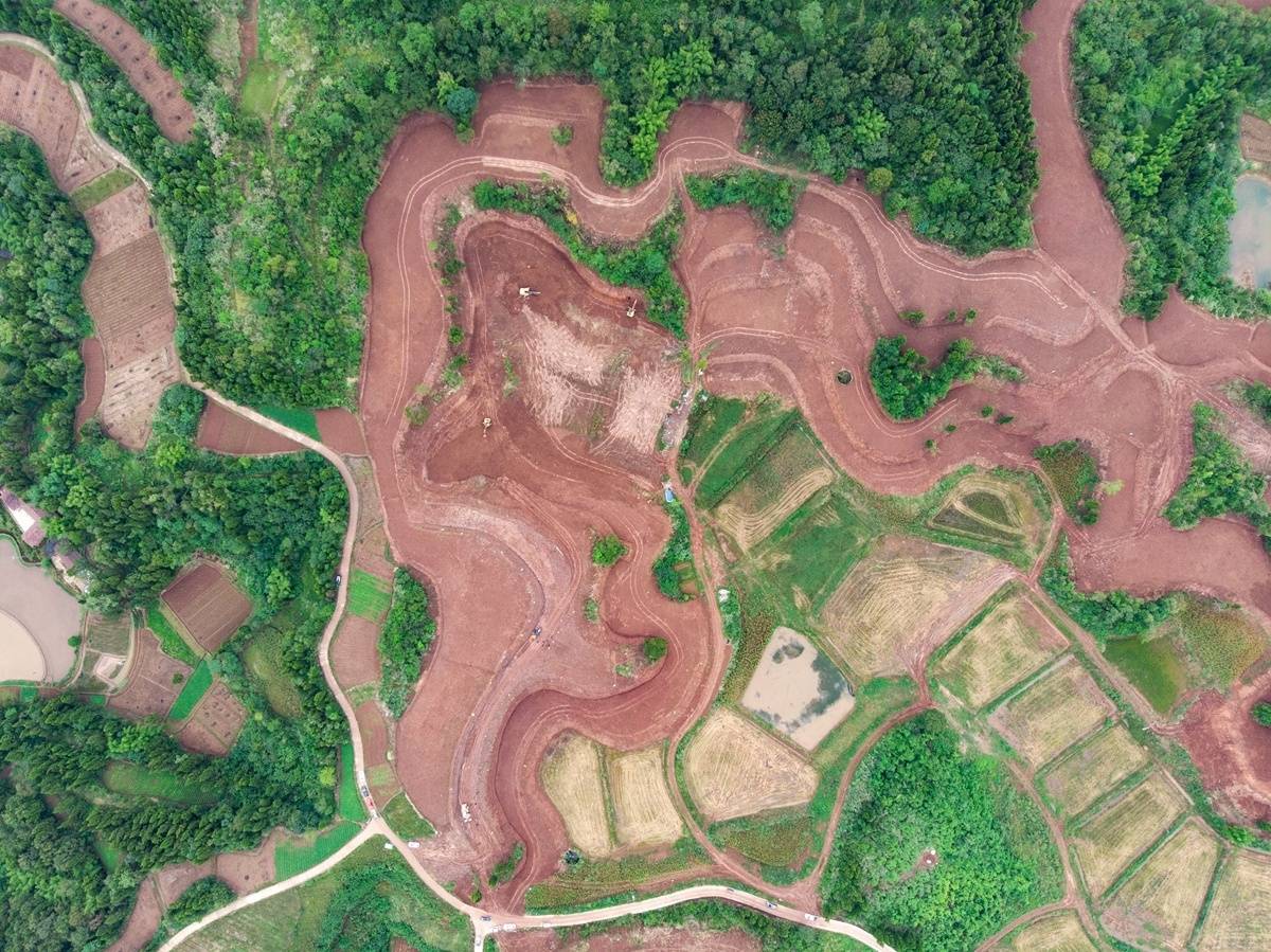 10月14日,内江市东兴区石子镇农田宜机化改造项目现场航拍。黄正华/摄