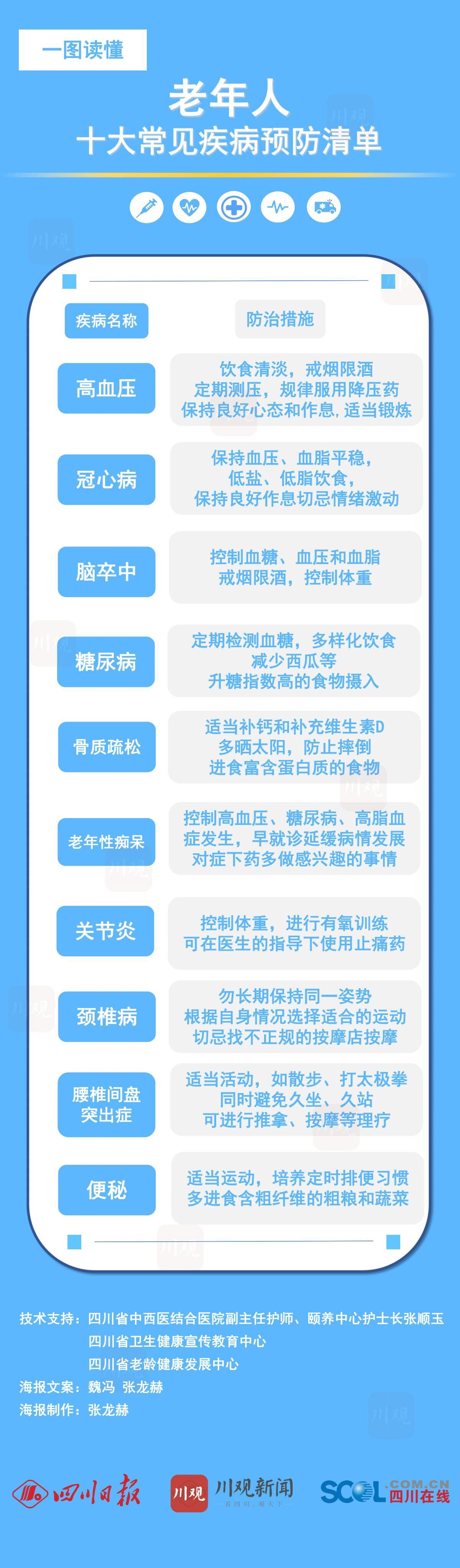 当前,四川已进入中度老龄化社会。随着年龄增长,老年人因身体各器官逐渐出现退行性变化,对疾病抵御能力逐渐下降。如何更好地预防疾病,成为老年生活中的重要话题。
