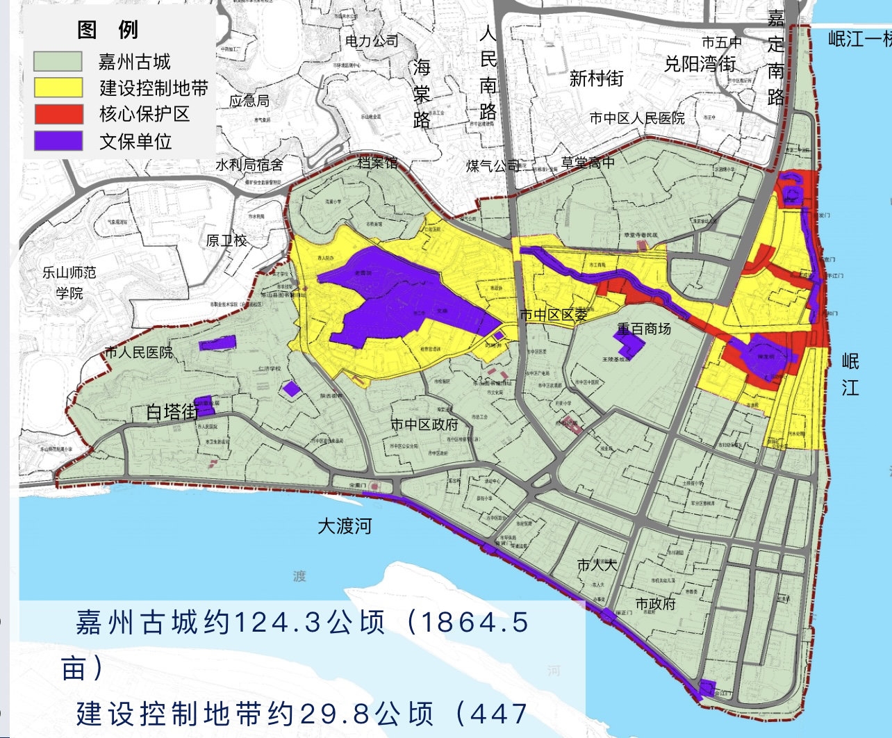 “此前,嘉州古城是一个模糊的区域。”刘晋明表示,《办法》依照历史遗迹的分布及专家团队考证,将保护范围确定为“北至岷江一桥,沿嘉定南路、兑阳湾街、新村街向西,西至乐山市人民医院家属院边界,沿乐山师范学院东侧边界向南至白塔街,南至大渡河,东至岷江”这一区域,使嘉州古城的保护与管理有了明确的边界。