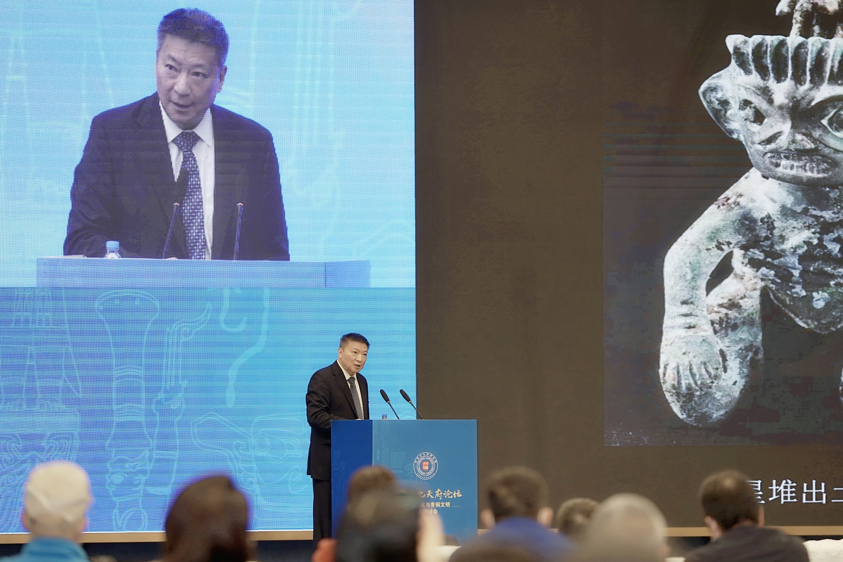 在10月29日举行的“中华文化天府论坛·三星堆文化与青铜文明学术研讨会”上,四川大学杰出教授、长江学者、四川省考古学会会长霍巍通过一组“形似”文物的比较,引导大家思考作为古蜀文明代表的三星堆与中原文明以及广阔区域的其他文明之间可能存在的关联。