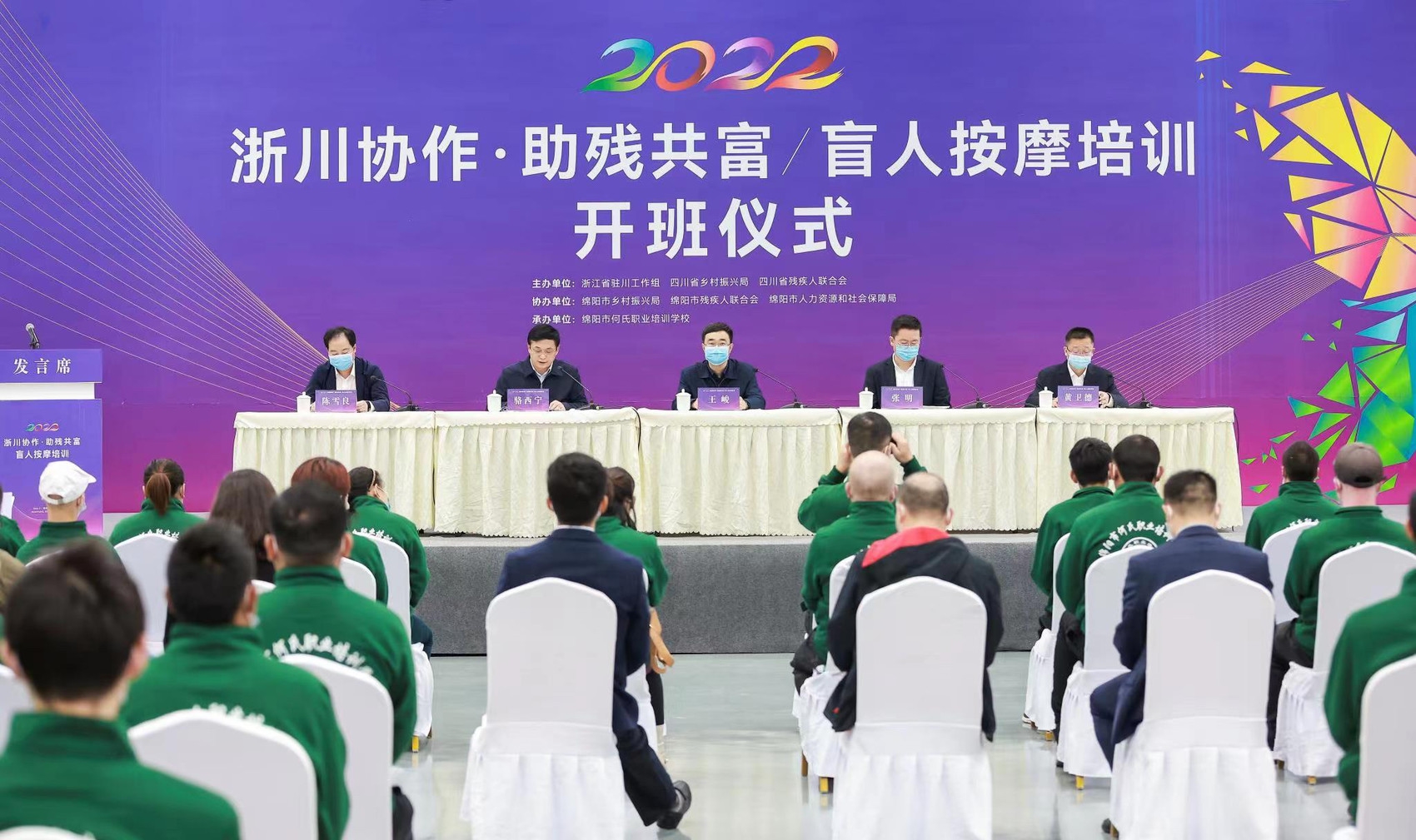 为不断深化浙川东西部协作残疾人帮扶工作,11月2日,“浙川协作·助残共富”盲人按摩培训班开班仪式在绵阳市公共实训基地举行。本次培训班是浙江省驻川工作组、省乡村振兴局、省残联共同确定的一个省级示范性、引领性的盲人按摩培训班,将惠及我省12个市(州)68个结对帮扶县(市、区)的残疾人家庭,助力残疾人融入乡村振兴和经济社会发展,提升残疾人就业创业能力。来自全省各地近80名盲人学员参加开班仪式。