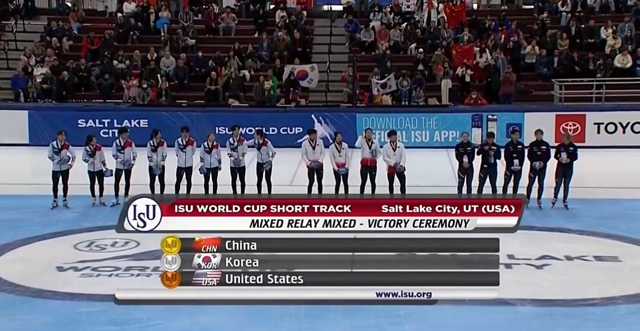 在刚刚结束的2022/2023赛季国际滑联短道速滑世界杯盐湖城站2000米混合接力比赛中,由李文龙、张楚桐、钟宇晨、王欣然组成的年轻中国队顶住压力,以2:37.153的成绩,力压韩国队、美国队和荷兰队,夺得冠军。