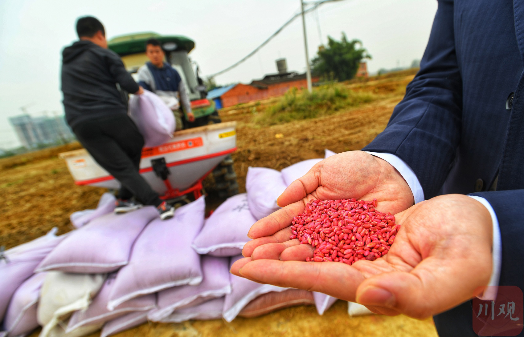 11月7日是立冬日,在成都环城公园区域内成金青立交附近、新都木兰区约500亩的耕地里,年末的秋播工作正在进行。“这个季节就是秋播的日子,这片种的是小麦,其它区域也种油菜籽。”“收获要等到明年5月份,油菜籽要晚点,7月份能收。”现场,成都天府绿道生态农业科技有限公司的项目负责人吴文浩告诉四川在线记者。此时,满载麦种的播种机械在耕地里欢快运行,绿道上不少市民也都驻足观看播种的农作场面。