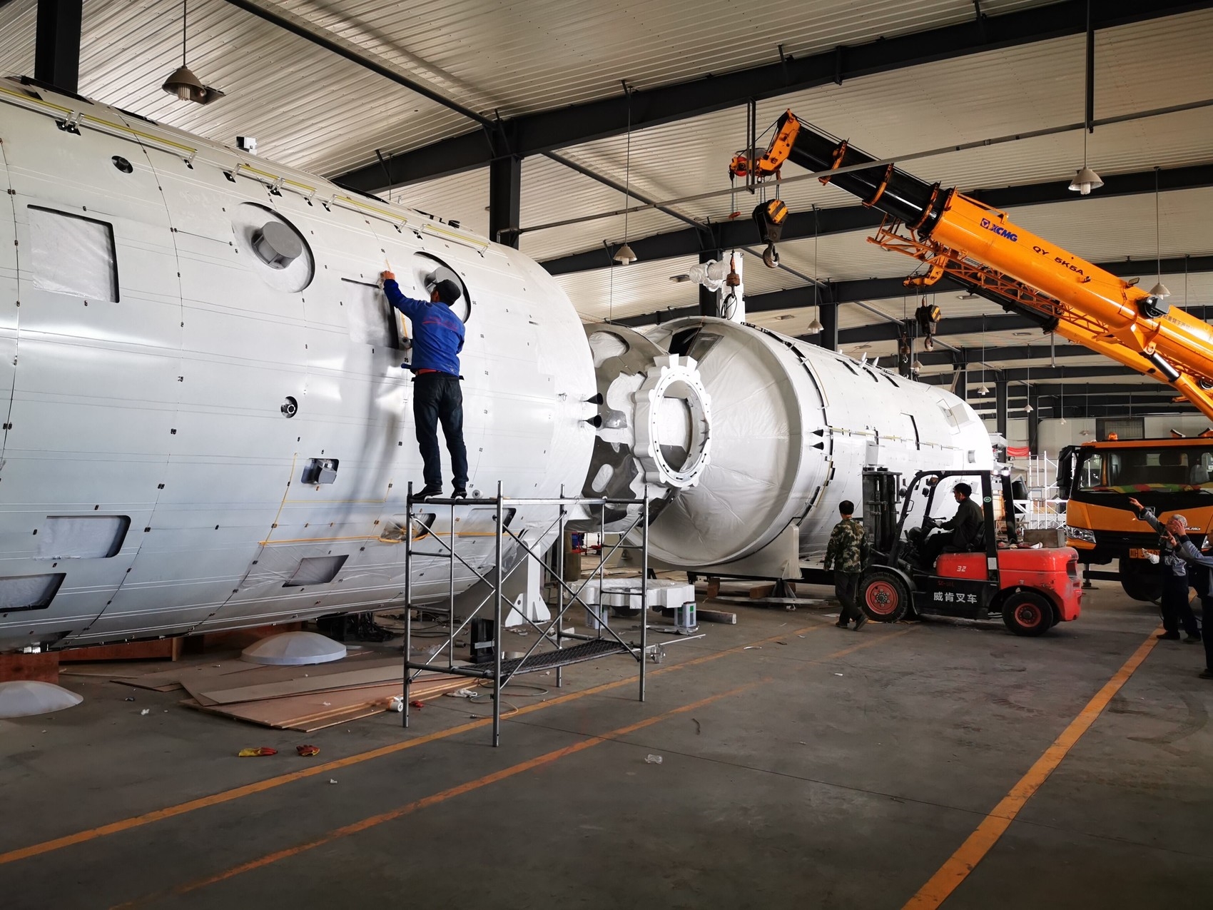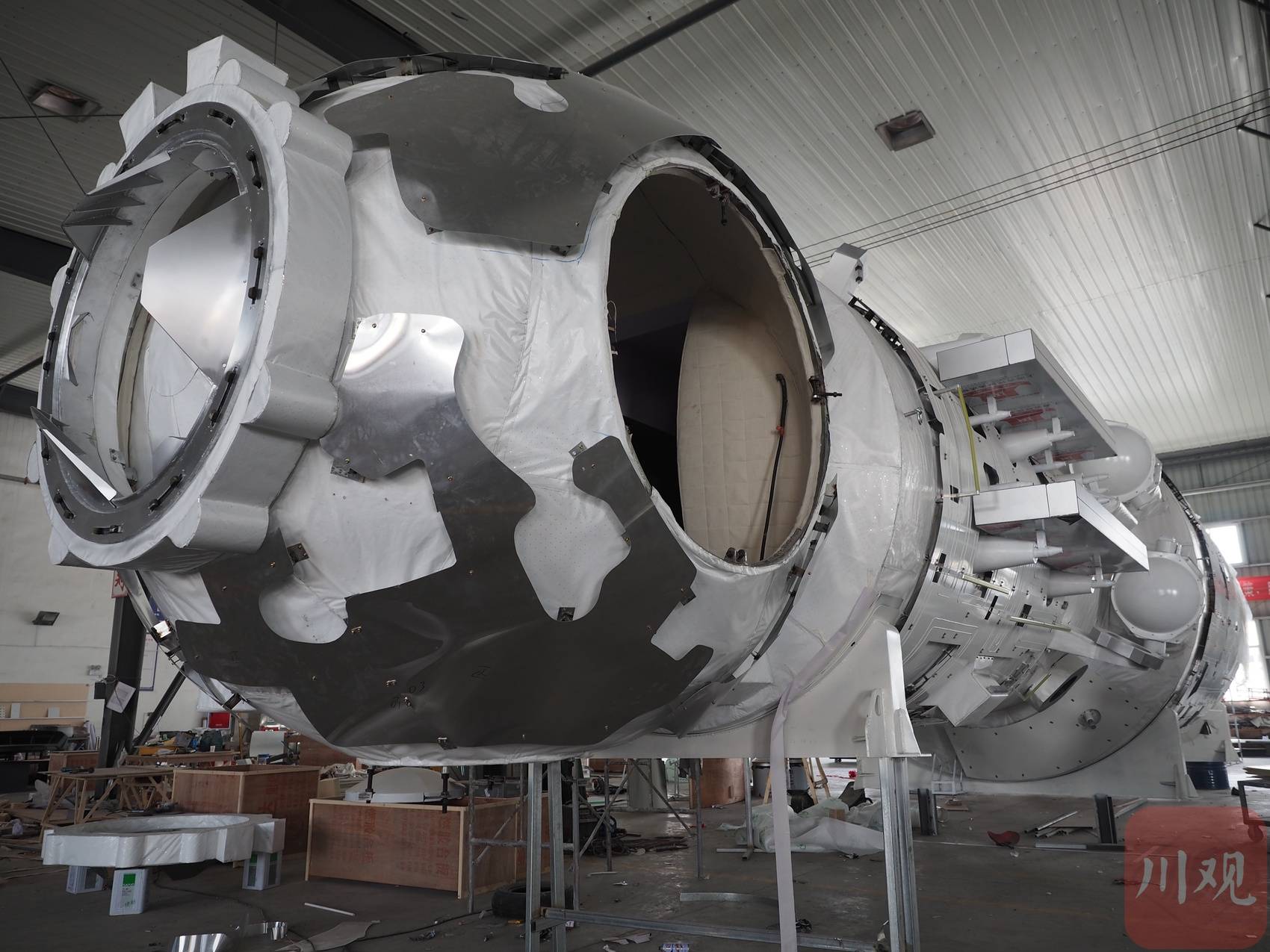 四川在线记者获悉,1:1的中国空间站组合体展示舱是在广元经开区袁家坝铝产业园区建造完成。四川硕彩新材料有限公司是一家专业从事动车模拟器、模拟空间站、观光火车的生产企业。作为此次中国空间站组合体展示舱生产企业,从7月底接到建造任务后,该企业克服高温、疫情等不利影响,努力抓生产、赶订单,于10月中旬建造完成。