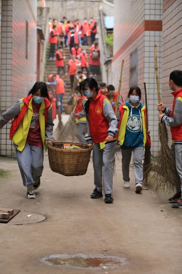 在合江县榕山中学党总支书记、校长宋晋宇的带领下,60余名党员和青少年志愿者齐聚社区广场,积极参与环境卫生治理。