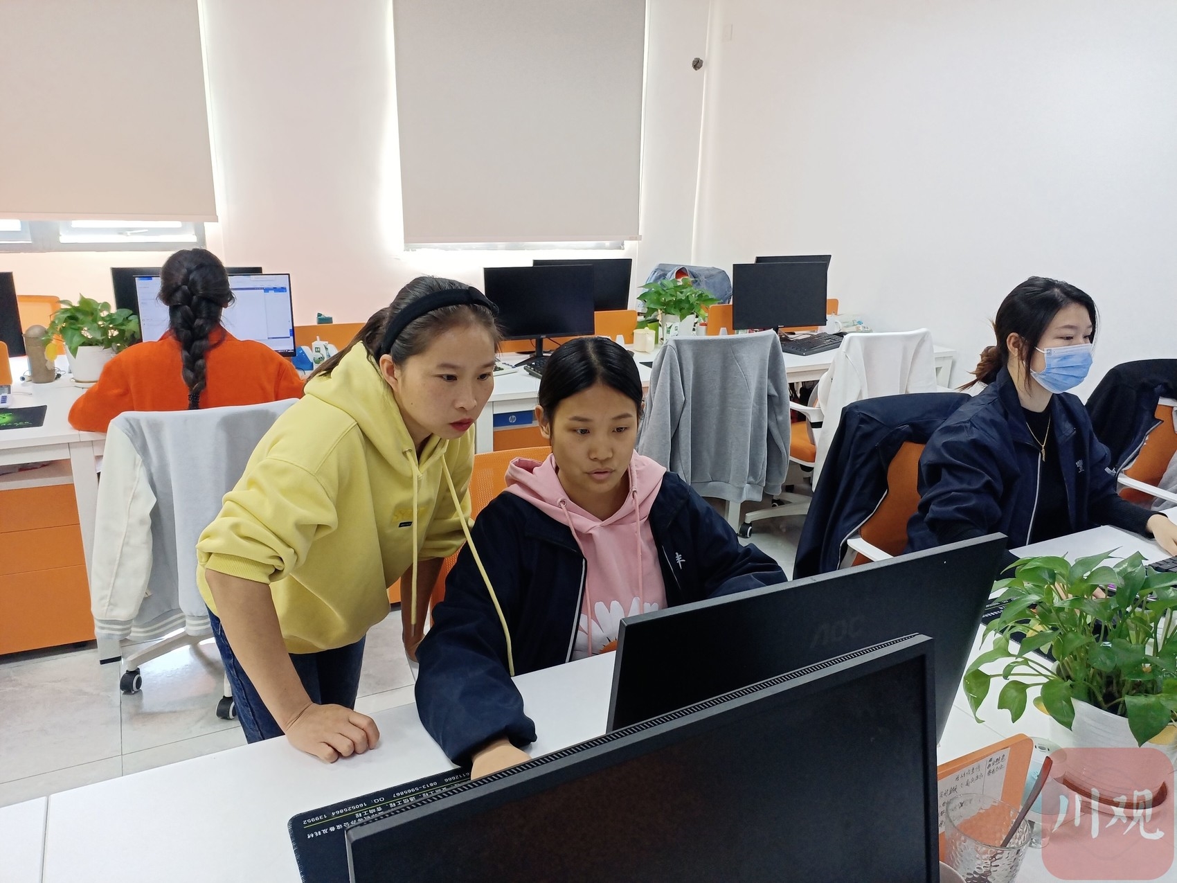 “蜀中桃子姐”龚向桃(左)在工作中。陈凡逸 摄