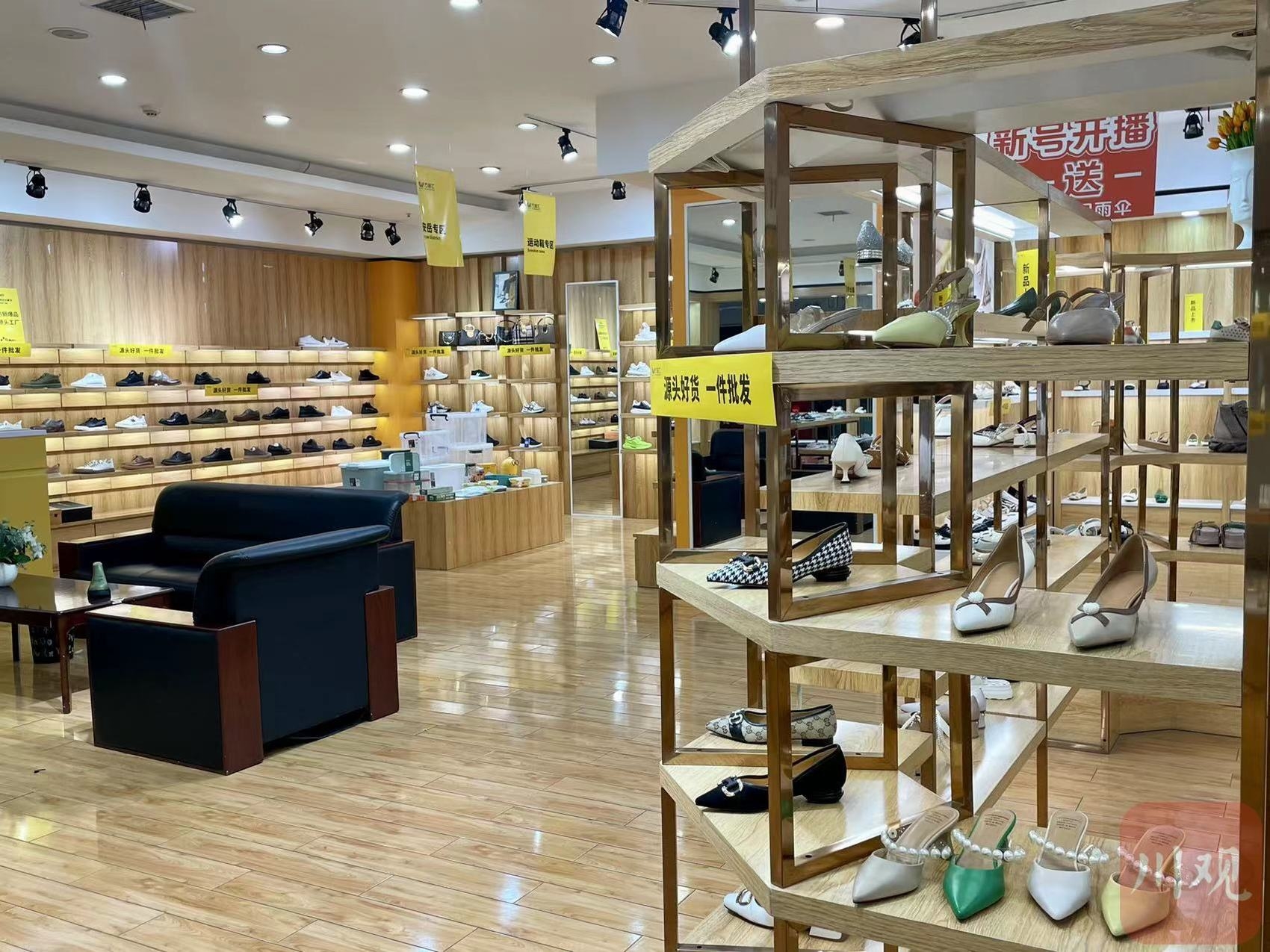 她妆美谷电商直播基地的万品汇供应链选品中心也如同商场一般,货架上错落有致地摆放着各式各样的鞋子。一位主播将手机镜头对准鞋子,解说着货物详情。万品汇供应链选品中心相关负责人介绍:“在这里,我们整合了温州、广州、成都地区的鞋类,打造了一条鞋类的供应链,主播不仅可以在这里选货,也可以在选品中心里进行直播,让消费者有种身临其境的感觉。当然,我们也有10个直播间可以供主播选择。”