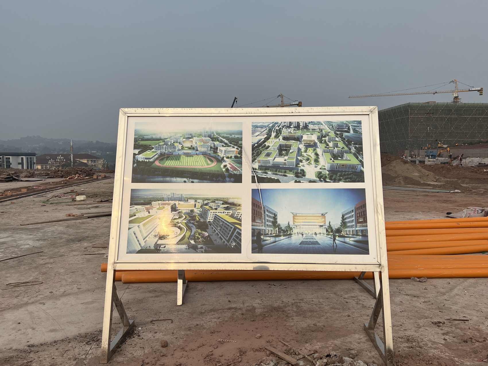 沿着缓坡行走,每隔几分钟就能看见工人推着搬运车,以及装有各种建材的卡车穿行。“9座单体建筑的主体已完工,正在进行外墙装饰施工,以及室内装修和安装施工。未来,这里将成为学校的创新创业中心、教学楼、实训楼等。”石智慧介绍。