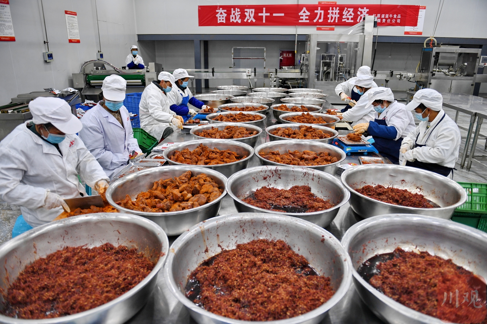 一年一度的“双十一”即将来临,电商企业纷纷铆足了劲,备足人力、货源积极应战。11月10日,记者走访阿坝州红原县绿色产业园区多家企业看到,工人们已提前进入了“实战”状态,为备足“双十一”货源,加班加点赶订单,生产车间和包装现场一派繁忙景象。