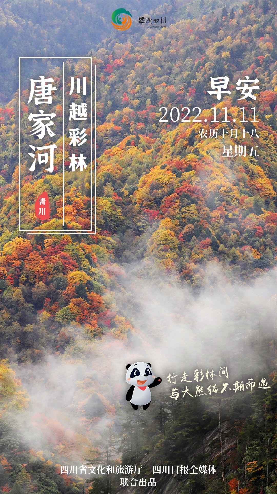 11月11日,星期五。本期开始,安逸四川日历海报将带大家“川越彩林”,看11月四川大美色彩。首站来到位于广元市青川县境内的一处原始的梦幻秘境——唐家河。