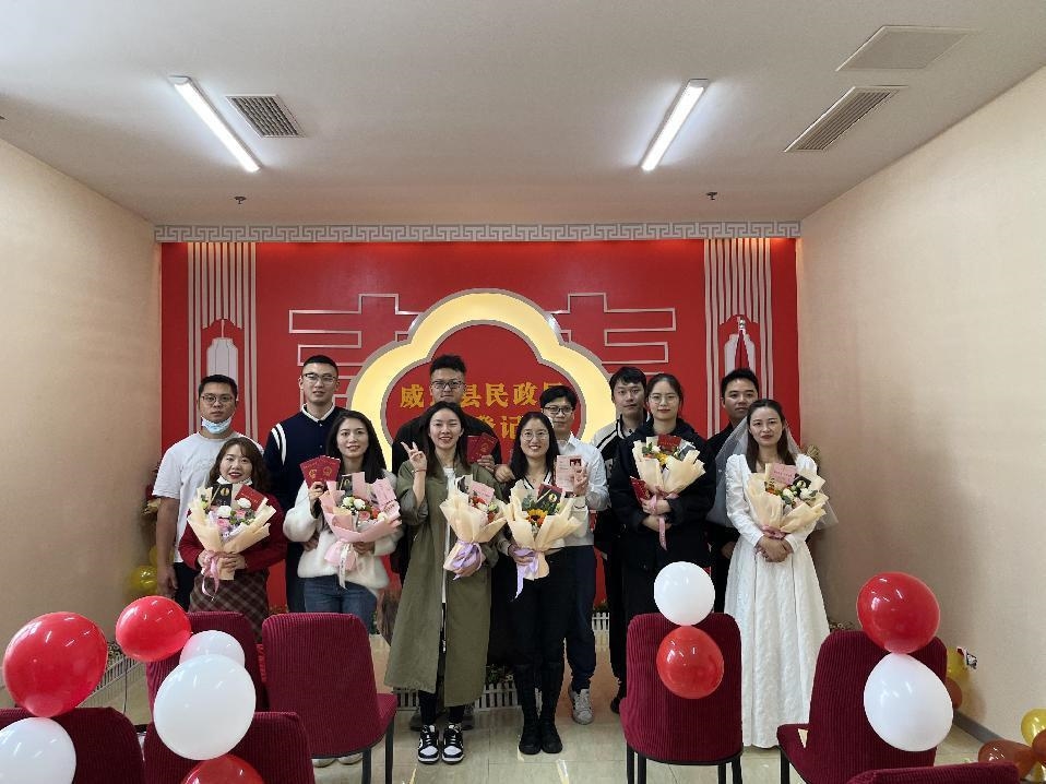 威远县民政局婚姻登记处为新人们颁证。威远县民政局婚姻登记处供图