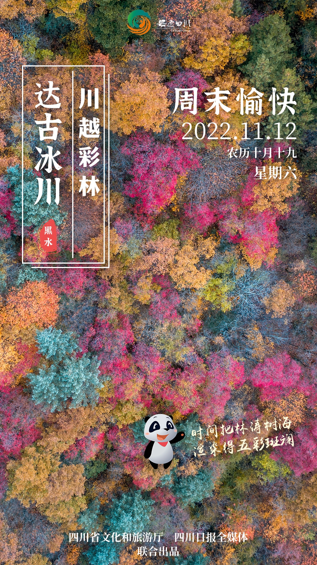 11月12日,星期六。今日安逸四川日历海报走进达古冰川,看时间渲染出的斑斓画境。
