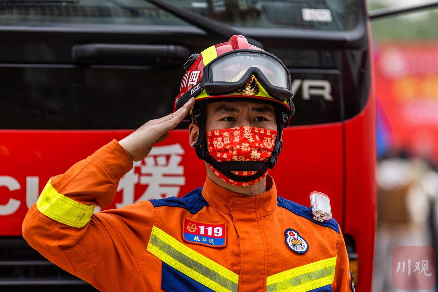 消防救援人员完成任务,顺利复命(川观拍客 林漫 摄)