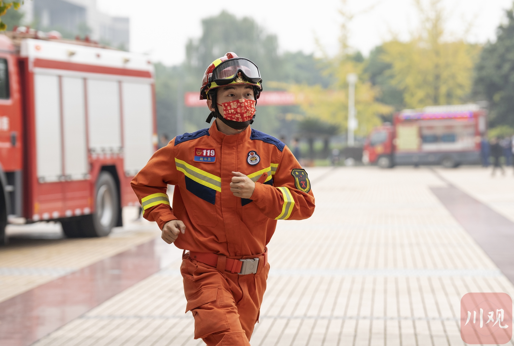 消防救援人员迅速集结(川观拍客 赵宇 摄)