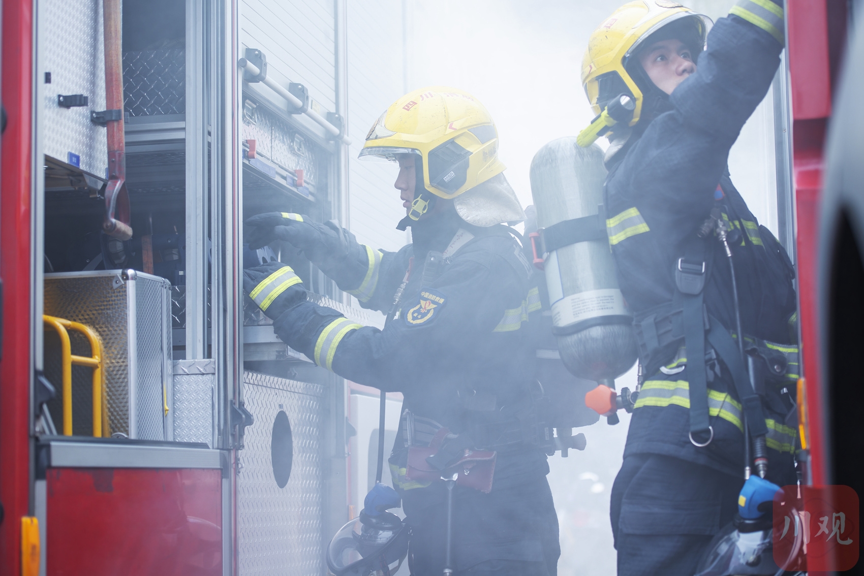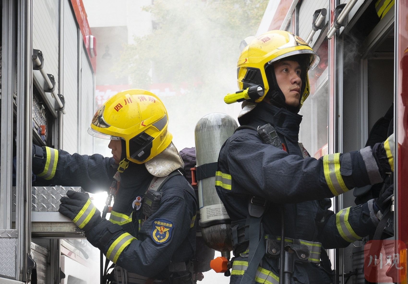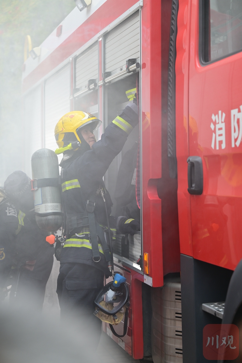 消防救援人员火速出击,抵达现场(川观拍客 朱丹 摄)