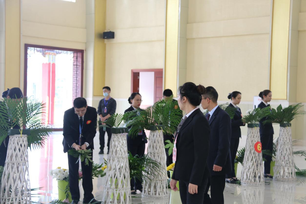 本次竞赛中,殡仪服务主要考核包括职业能力理论测评、插花、接待洽谈、主持等内容。遗体防腐整容主要考核包括职业能力理论测评、器官塑形、化妆、防腐等职业能力。实操考核主要考察选手于规定时间内在准备工作、操作流程和整体呈现等方面的细节规范程度,以及临场应变能力。
