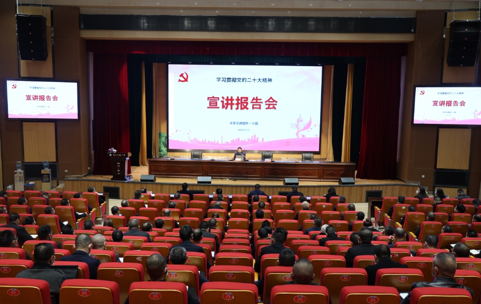 11月14日上午9点,在南充市营山县白塔小学校的阶梯教室,100多名营山县教育工作者,认真聆听省委宣讲团第一分团成员、西南石油大学马克思主义学院教授张小飞宣讲党的二十大精神。
