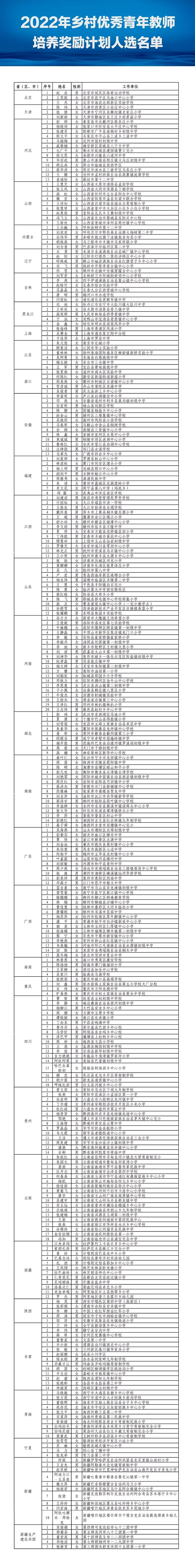 教育部教师工作司、中国教师发展基金会2022年继续实施乡村优秀青年教师培养奖励计划,经省级教育行政部门推荐、资格审查、公示等环节后,最终确定2022年乡村优秀青年教师培养奖励计划入选教师298人,其中四川18人入选。