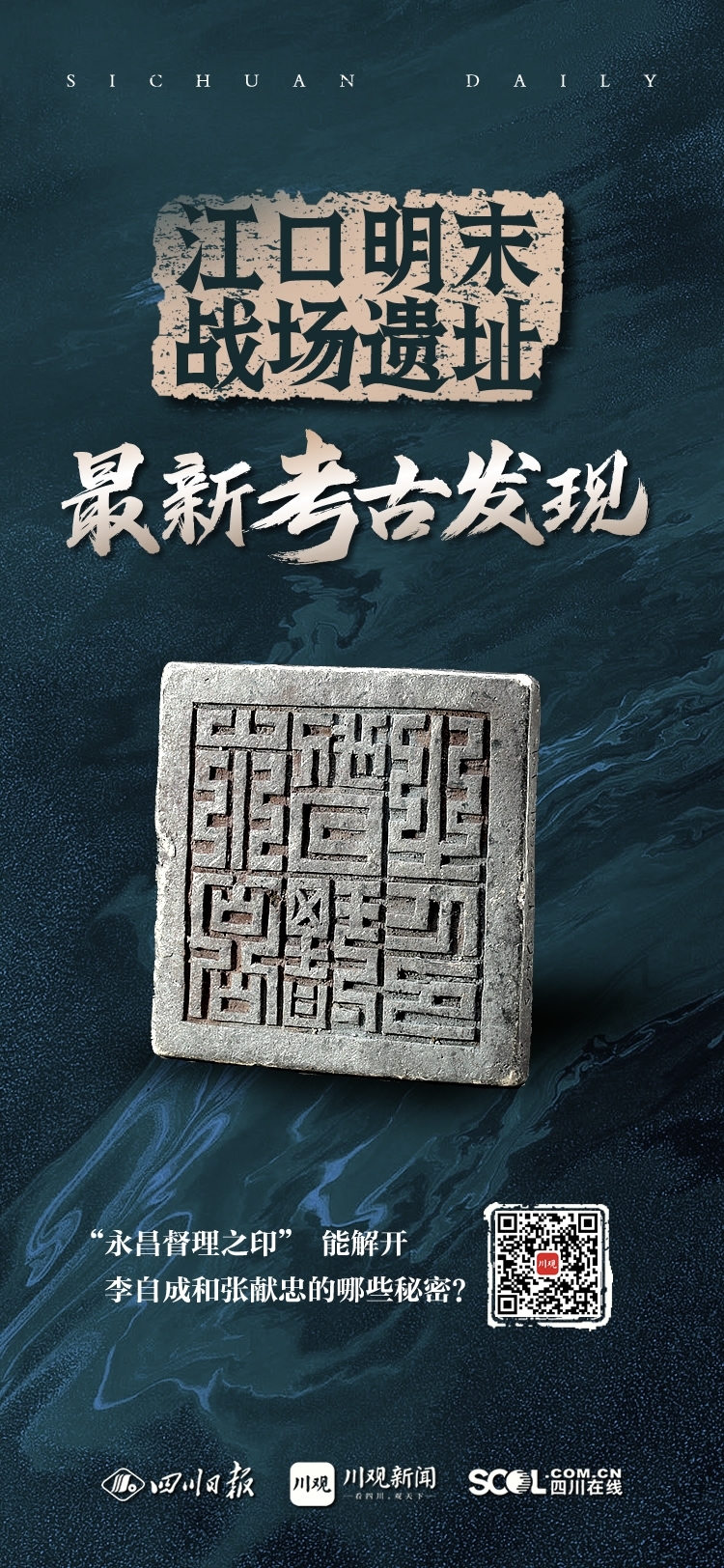 11月16日,四川省文物考古研究院公布遗址最新考古发掘成果。在遗址南北两侧共1000平方米的发掘区内,再次出水了上万件珍贵文物——明代荣王府的世子金印“荣世子宝”惊艳出水;李自成授给张献忠部使用的“永昌督理之印”银印,成为佐证张献忠“永昌大元帅金印”真伪的重要线索;源自明代吉王府的“钦赐崇德书院”铜印,也从长沙辗转来到了四川。此外,还有大量张献忠大西政权铸造的银锭、历代兵器及钱币等文物重见天日。