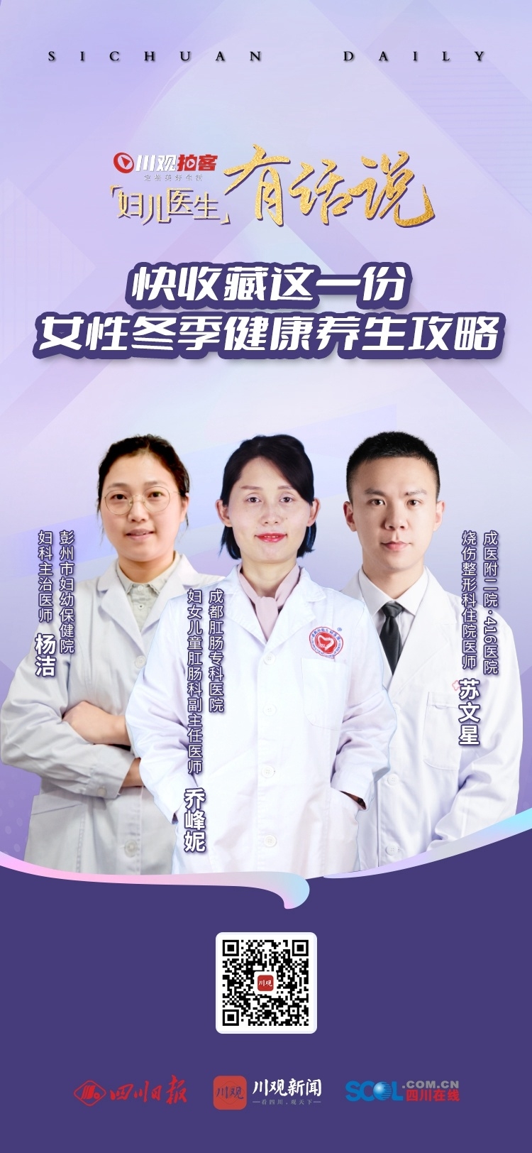 今天,第五期《妇儿医生有话说》如约与您见面,来自成都市三所医院的医生在川观拍客的镜头前,就“女性冬季如何健康养生”的话题,从不同维度和切口,谈看法,提建议。