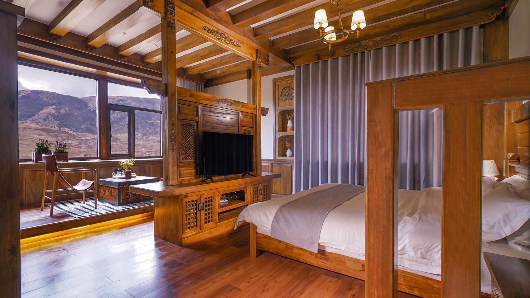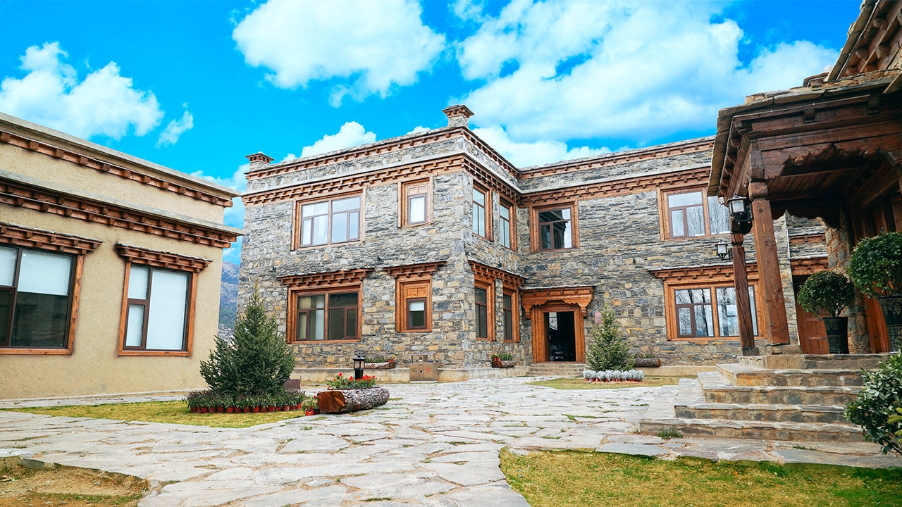 这个今年5月才开业的藏式精品民宿,位于国道227旁,地处理塘到稻城亚丁必经之路上,由当地政府整合资金1000余万元进行投资,在原有的5栋藏式民居基础上改建而成,采用政府投资建设、专业公司运营、村集体经济参与的方式运行,并整合周边资源,打造成为集餐饮、美食、住宿、休闲观光体验于一体的综合旅游服务区,如今已成为理塘县有一个小有名气的打卡地。