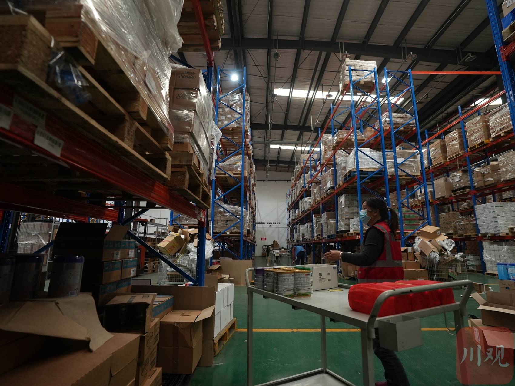 中午2点过,综保区内企业好嗨购国际贸易(成都)有限公司仓库,工人正加紧分拣包裹。
