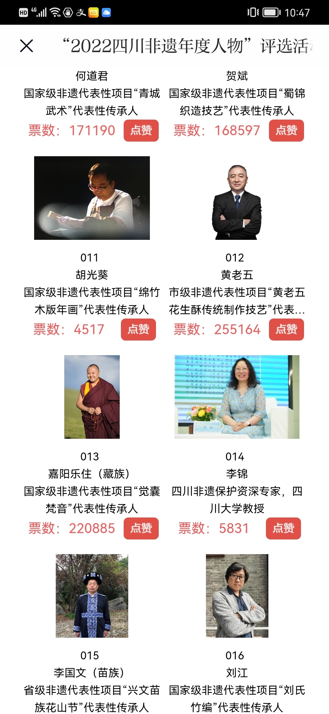 此次网络投票结束以后,将会同专家评审结果一起,综合评出10位四川非遗年度人物,结果将在12月正式公布,敬请期待。
