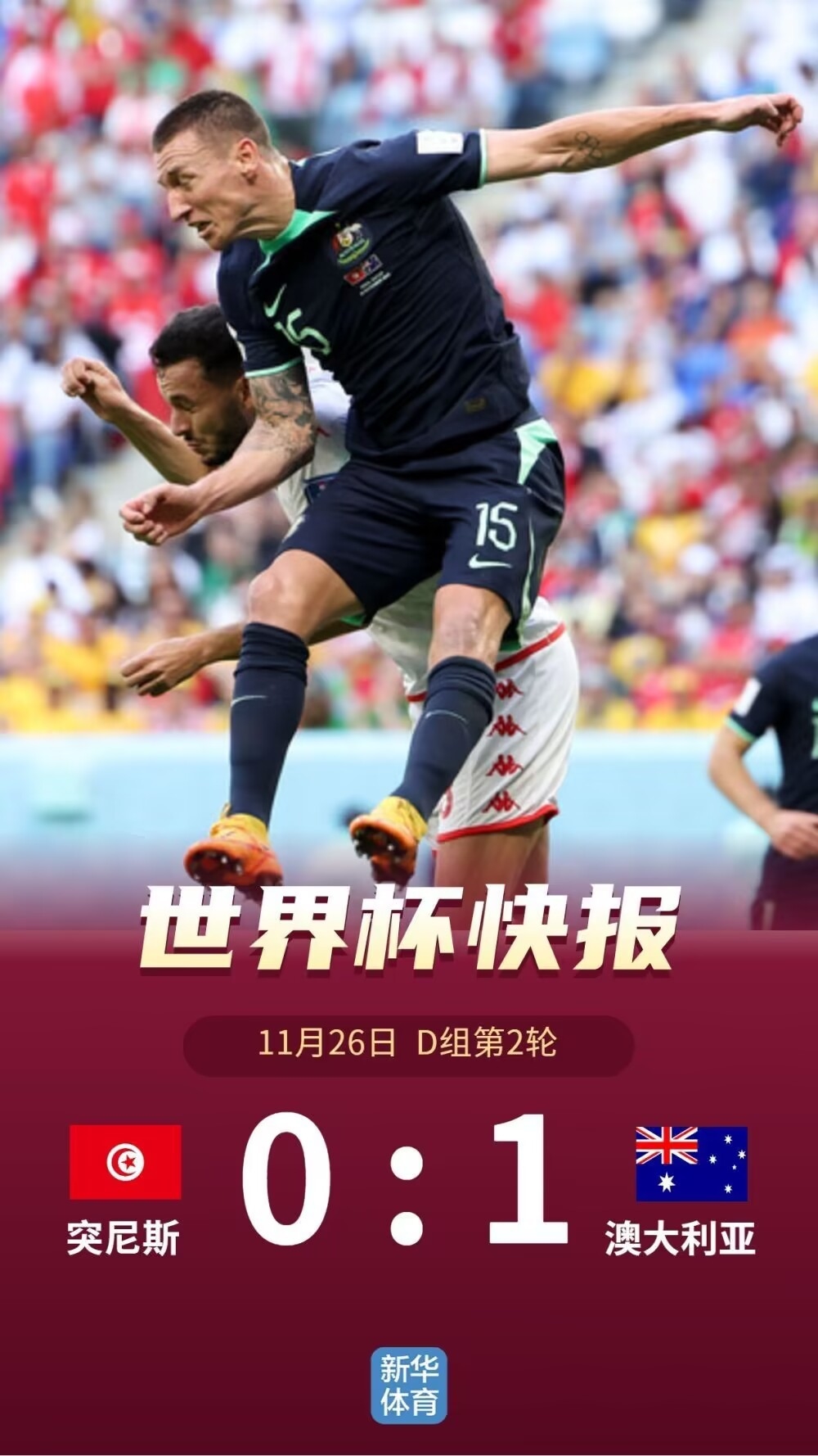 北京时间11月26日,2022年世界杯迎来D组第二轮争夺。在率先进行的非洲球队突尼斯队与亚足联球队澳大利亚队的比赛中,两支球队展开对攻。最终,澳大利亚队1:0击败对手,将出线希望留到了小组赛最后一轮。