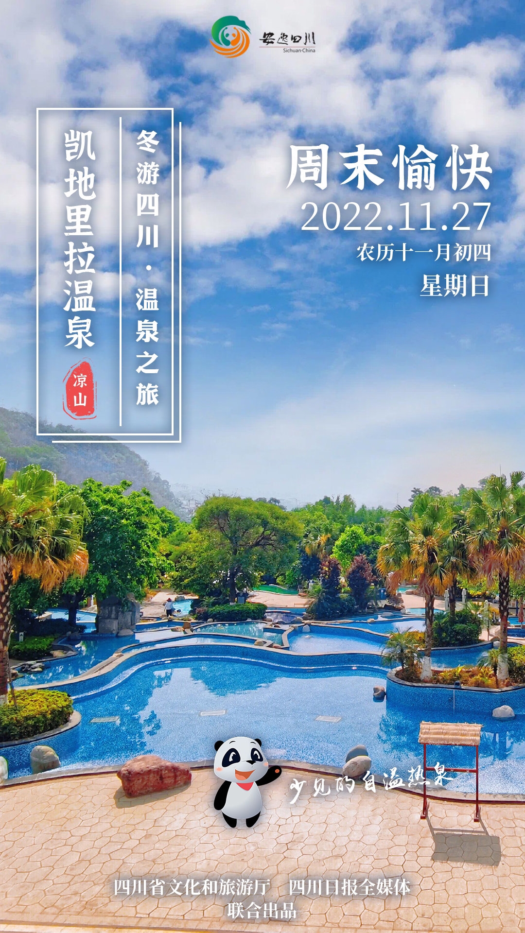 11月27日,星期日,周末愉快。今日冬游四川日历海报走进位于凉山州宁南县的凯地里拉,感受阳光与温泉的风景独好。