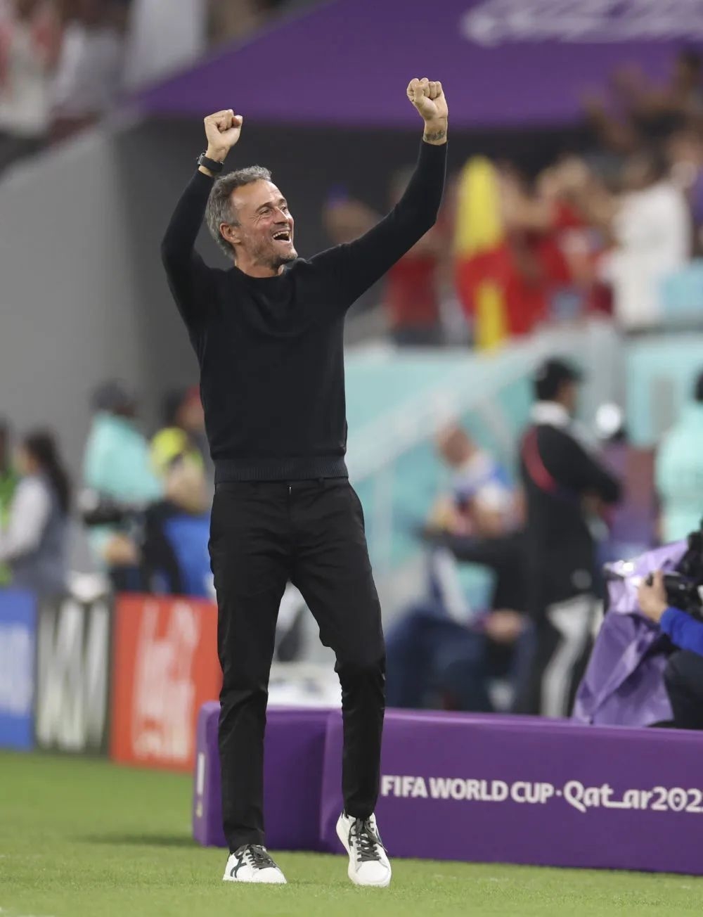 11月23日,西班牙队主教练路易斯·恩里克在场边庆祝。当日,在卡塔尔多哈阿图玛玛球场进行的2022卡塔尔世界杯足球赛E组比赛中,西班牙队对阵哥斯达黎加队。新华社记者 李明 摄
