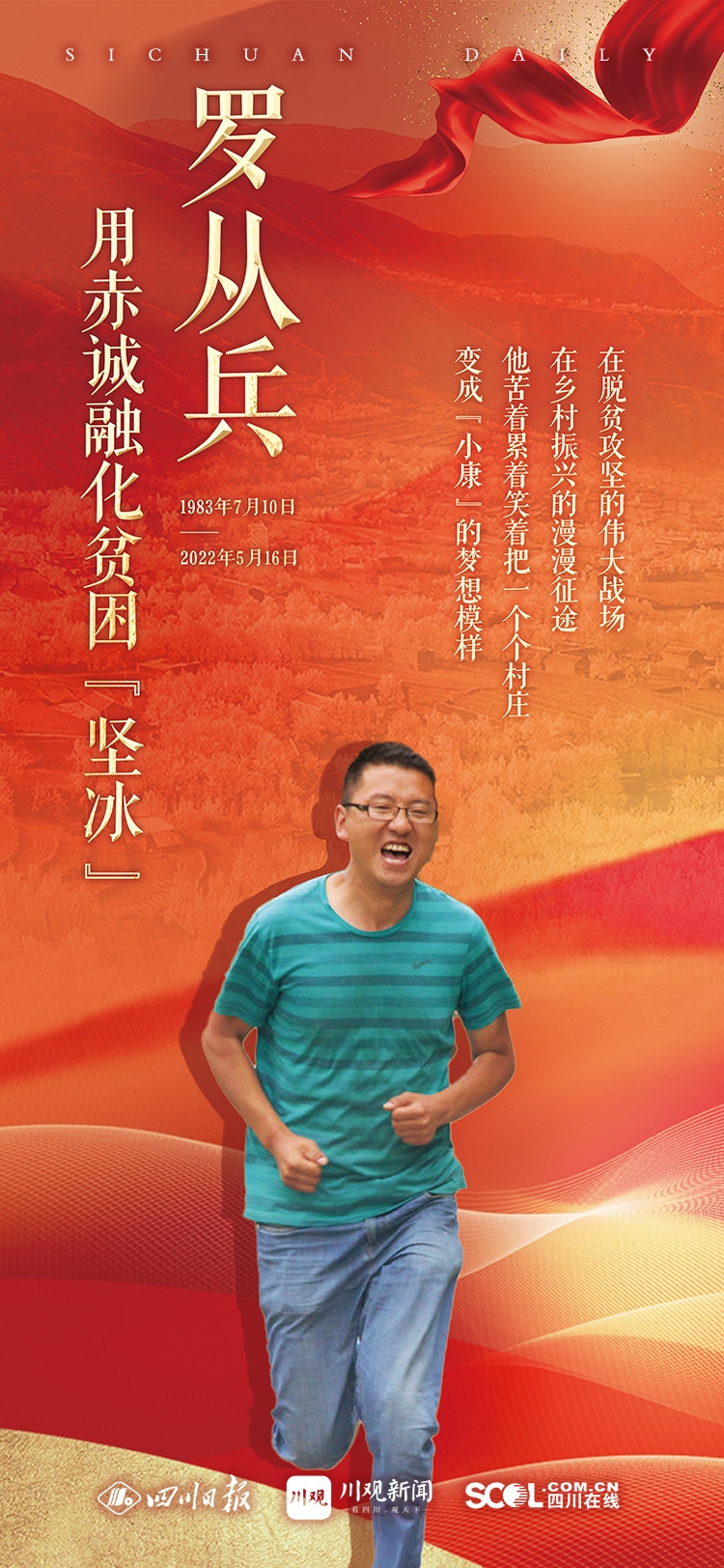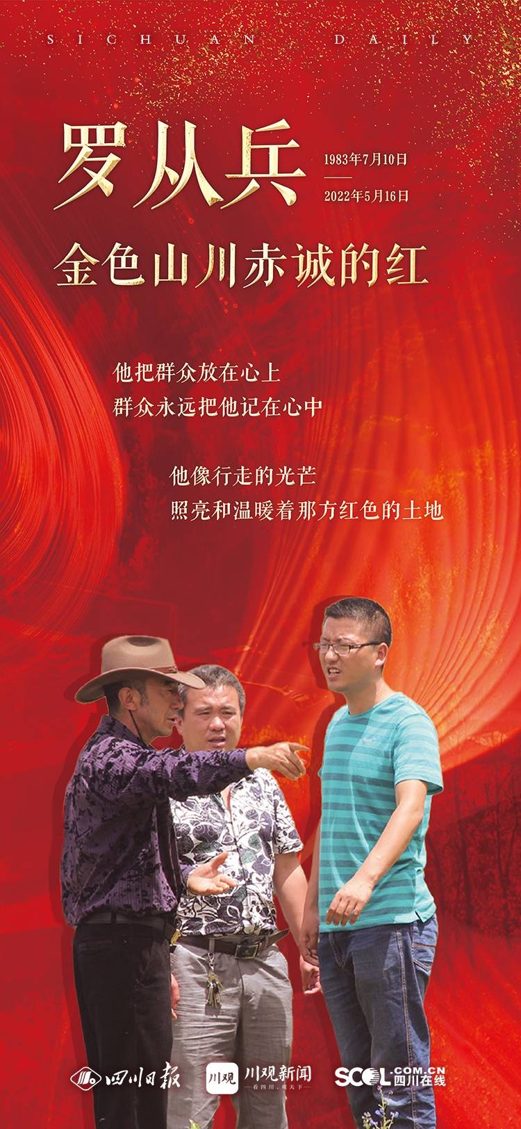 罗从兵,藏族,共产党员,先后担任金川县原太阳河乡、原马尔邦乡、马奈镇党委书记,2021年7月任县交通运输局党组书记、局长。在基层工作近20年,罗从兵一心扑在一线竭诚为民,与群众鱼水情深打成一片。今年5月16日,他在率队检查指导“四好农村路”建设工作中,突发疾病,经抢救无效因公殉职,年仅39岁。