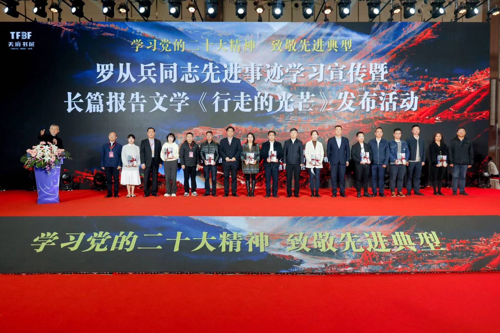 11月27日上午,由四川新华出版发行集团、四川日报报业集团主办的“学习党的二十大精神 致敬先进典型 罗从兵同志先进事迹学习宣传暨长篇报告文学《行走的光芒》发布活动”,在2022天府书展主场馆举行。
