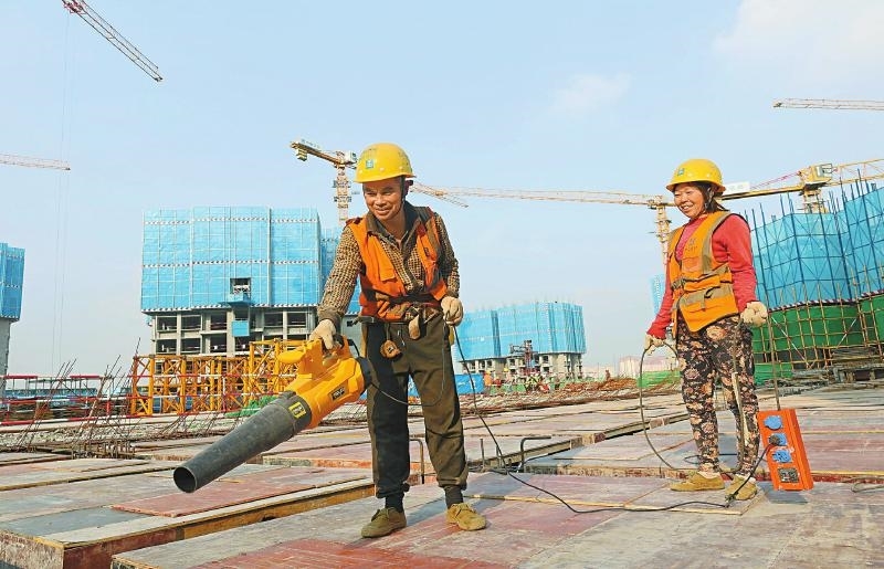 11月16日,中建四局的工人在成都市龙泉驿区目前最大的安居工程项目——怡和新城G区工地上施工。