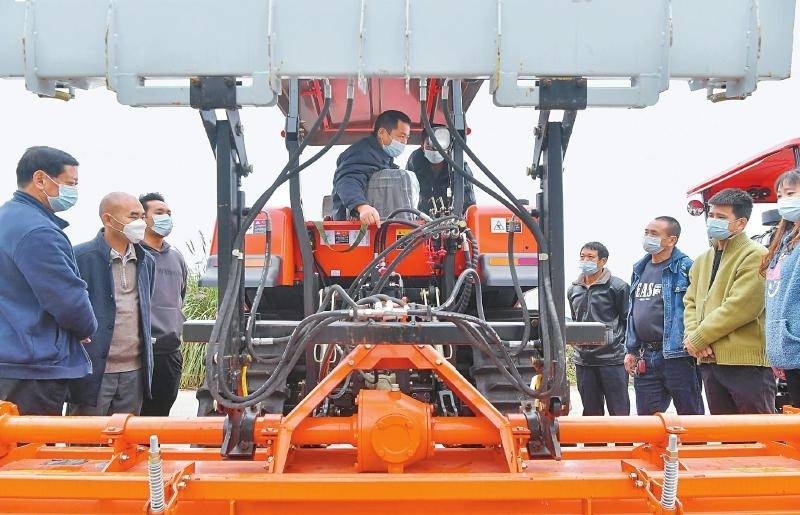 11月15日,广安市广安区农业业主和种植农户听取农机手现场讲解农机具的操作知识。冬闲变冬忙,业主和农户学习新技能。
